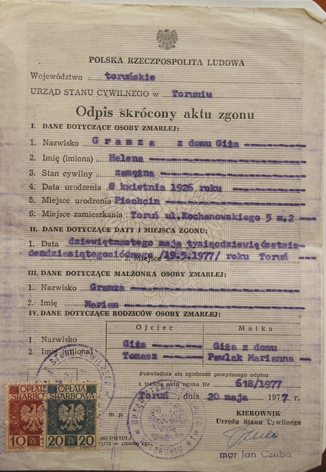 Urodziny: 8 kwietnia 1926 31 26 — Piechcin, kujawsko-pomorskie, Polska Śmierć: 19 maja 1977 — Toruń, Polska |